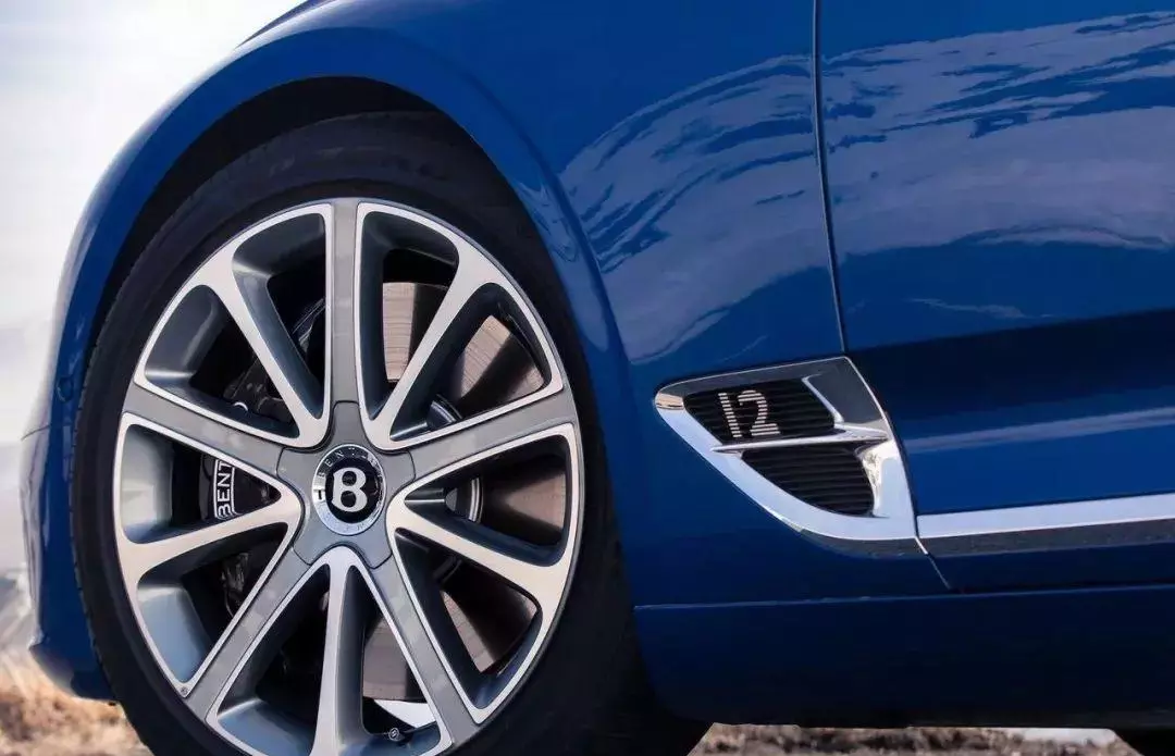 欧陆GT全系将标配21英寸轮毂,并提供两种不同造型,也可选择22英寸轻量化锻造轮毂,侧翼子板处有个小的通风口,附有“12”的字样;DBS搭配21英寸“Y”字型轮毂,在前轮拱上有超级夸张的通风口,可以有效地为前刹车散热,下方还有DBS的标识,性能范十足。