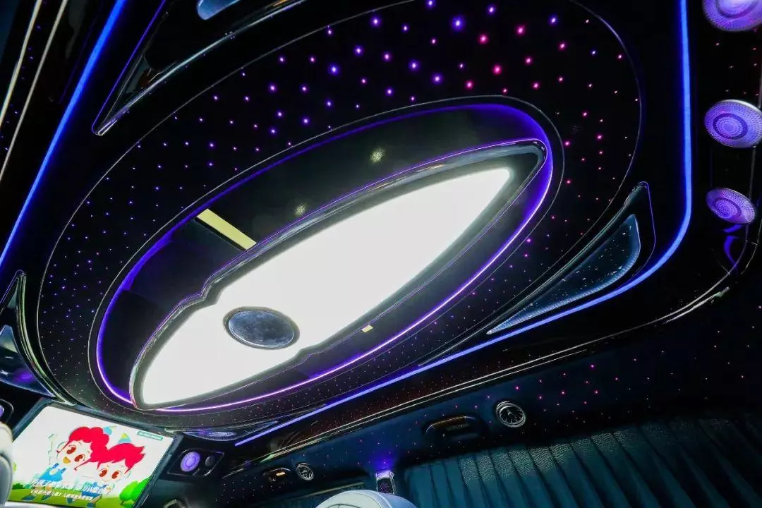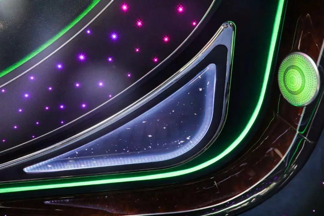 打开车门的一瞬间,满眼都是造型独特的月相星空顶和周围浪漫的氛围灯。宛如浩瀚星空下的点点星辰,绚丽夺目。