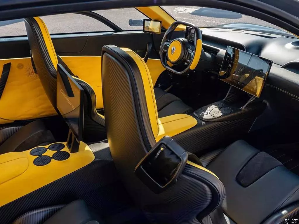 从现场拍摄图来看,Gemera沿用了电子后视镜的设计,不仅可以进一步降低风阻,同时也会把画面呈现在车内的显示屏上,当然如果想在国内上路,还是需要更换为传统造型的镜面外后视镜。尺寸方面,新车的长宽高分别为4975/1988/1295mm,轴距3000mm,整备质量约1850千克。