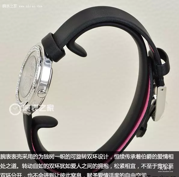 腕表表壳采用的为独树一帜的可旋转双环设计,恒续传承着伯爵的爱情相处之道。转动自如的双环犹如爱人之间的拥抱,松紧相宜,不至于宽松至双环分开,也不会进到让彼此窒息,赋予爱情适度的自由空间。