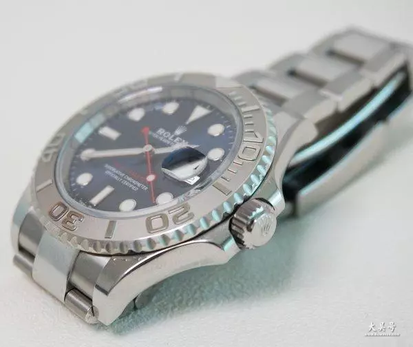 劳力士游艇虽然张的像潜水表,但并不是专业潜水表。游艇的表冠也使用了劳力士的三重防水装置,有三把锁,在解锁表冠后,表冠弹出,也可以看到粗壮的防水胶圈,但是游艇的防水是100米。水鬼这种专业潜水表,300米防水是基本标准。
