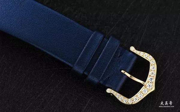 腕表配备一条蓝色小牛皮表带,表面呈现缎面质感,触感很高级也很柔顺丝滑,佩戴上手也非常舒适。与表带搭配的18k金表扣上也镶嵌钻石,整表连带表扣表盘,共计镶嵌有279颗明亮式切割圆钻,共1.35克拉,这么一算这个价格也不算贵了?