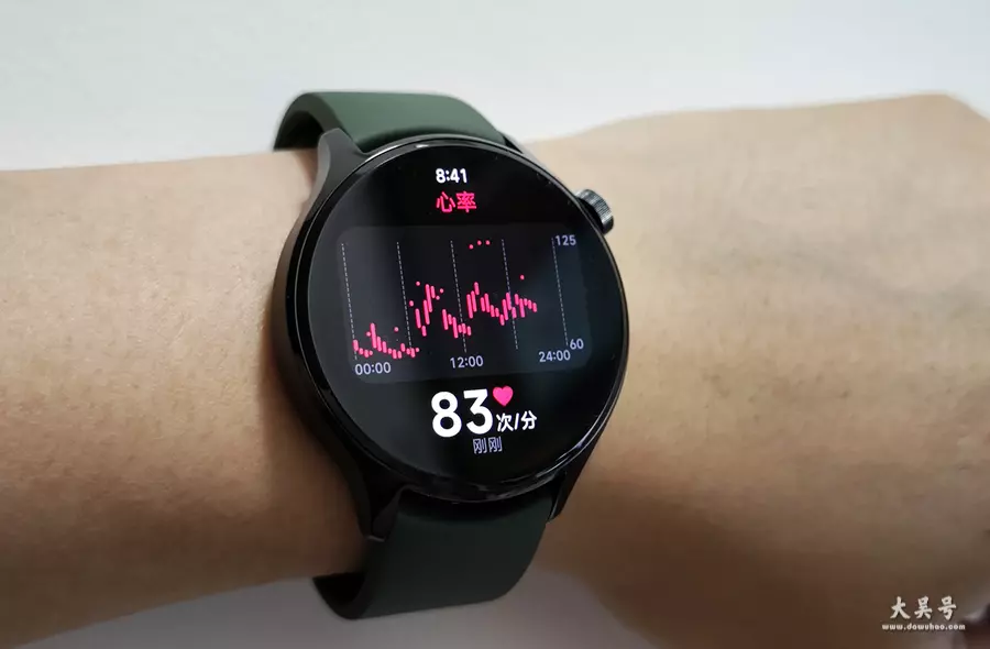 手表屏幕的分辨率为480×480,像素密度为326ppi,显示效果细腻,同时屏幕亮度可以达到600nit,在室外使用也没有问题。