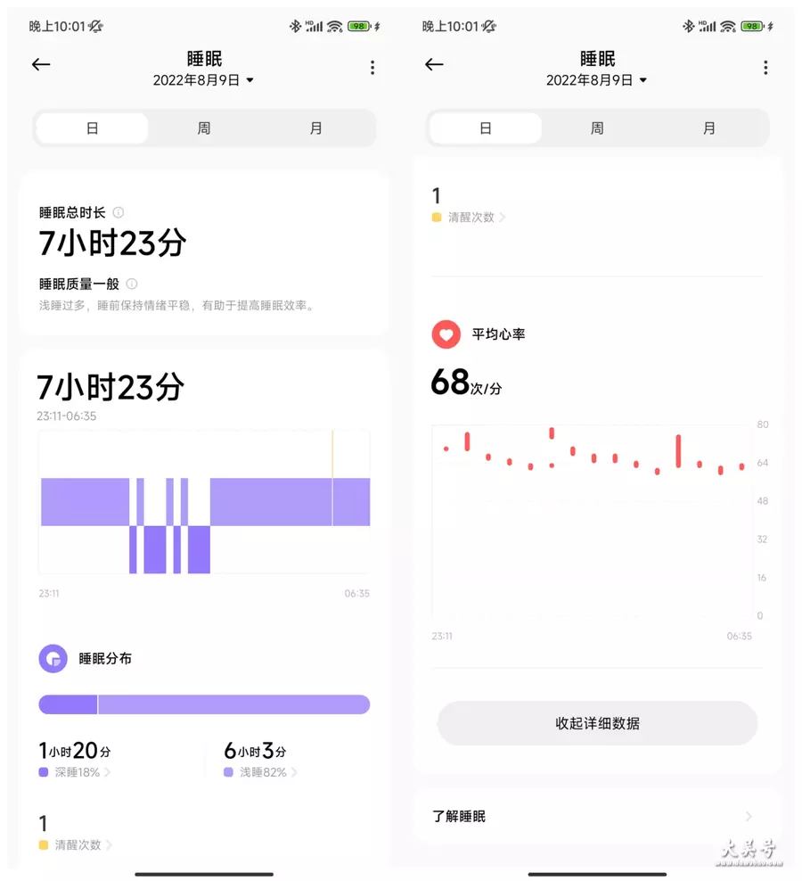 在手机app中,会显示更加详细的数据信息,包括深睡时间以及浅睡时间,让用户更好的了解睡眠情况。小米手表s1 pro还支持睡眠呼吸质量监测,在睡觉的时候就可以帮你记录下身体的状况。