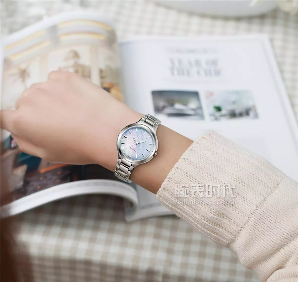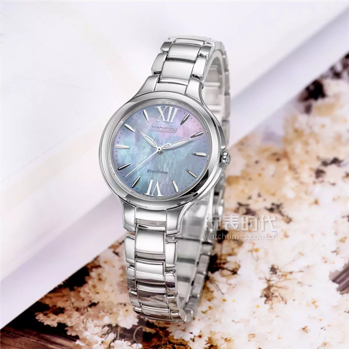 西铁城EP5991-57D 光动能贝母表盘优雅时尚简约钢带女士腕表