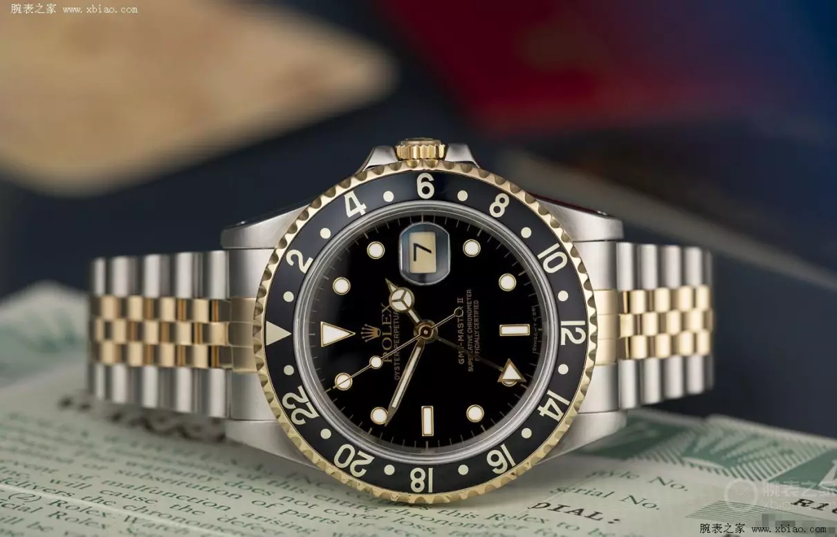时间来到80年代,腕表的奢侈品属性愈发明显。劳力士在1989年为格林尼治型II系列增添了黄金钢版本,以展现奢华质感。型号16713是格林尼治型II首款间金GMT腕表,该作使用阳极氧化铝字圈,内置Cal.3185机芯。可以看到初代间金GMT腕表的时代特征鲜明,外圈使用圆润且纤细的字体,与现售产品有着明显区别。Ref.16713从八十年代末首次亮相至2005年停产,堪称一代经典。