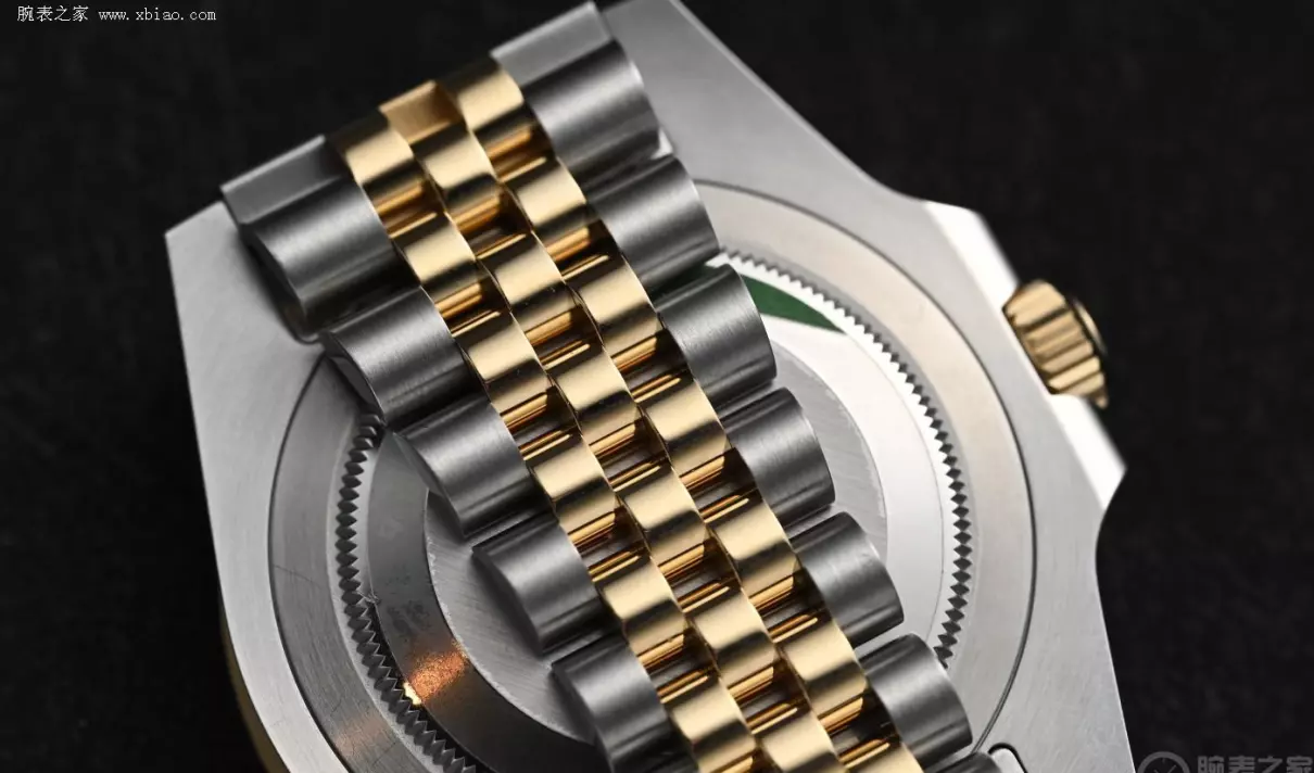 纪念型表带亦是这款新品的独特之处。作为对比,前代作品Ref.116713使用的是蚝式表带。两款表带在外观、佩戴体验上各有侧重。我们知道对于“百事圈”、“蓝黑圈”等款式,品牌同时提供两种表带供选择,而新版格林尼治型II黄金钢腕表目前仅搭配纪念型表带。