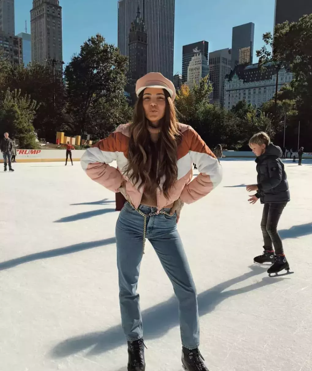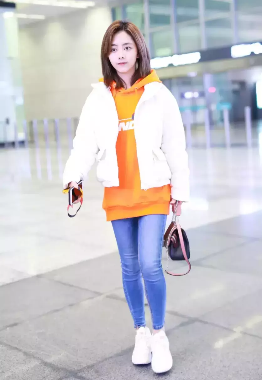 谭松韵虽然选择的短款羽绒服,但在内搭的卫衣长度上好像有些多余,腰线划分不明朗,矮个子女生把内搭换成短上衣+高腰裤会更好。