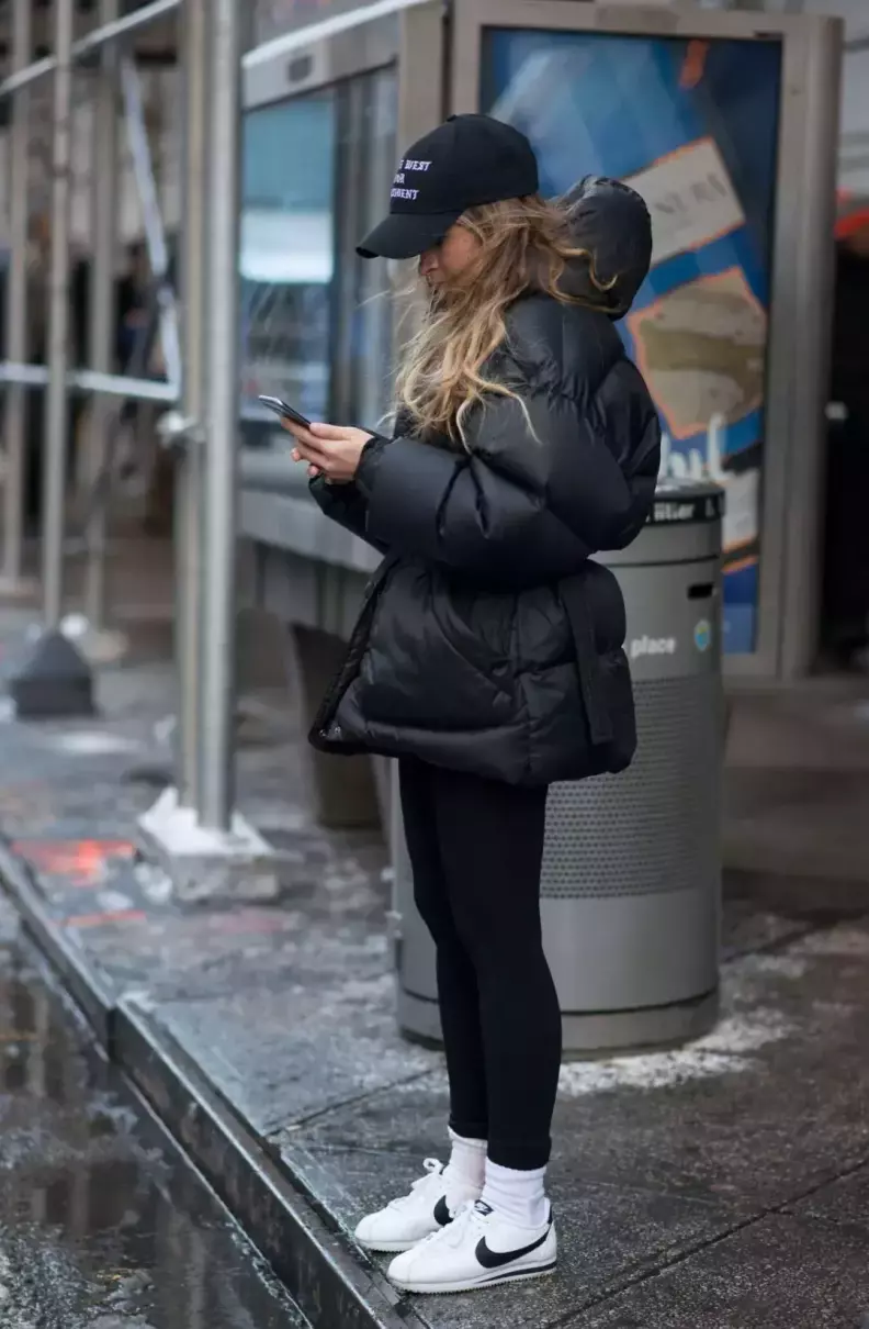 最近,Bella Hadid对羽绒服十分热衷,她选的羽绒服是这样的: