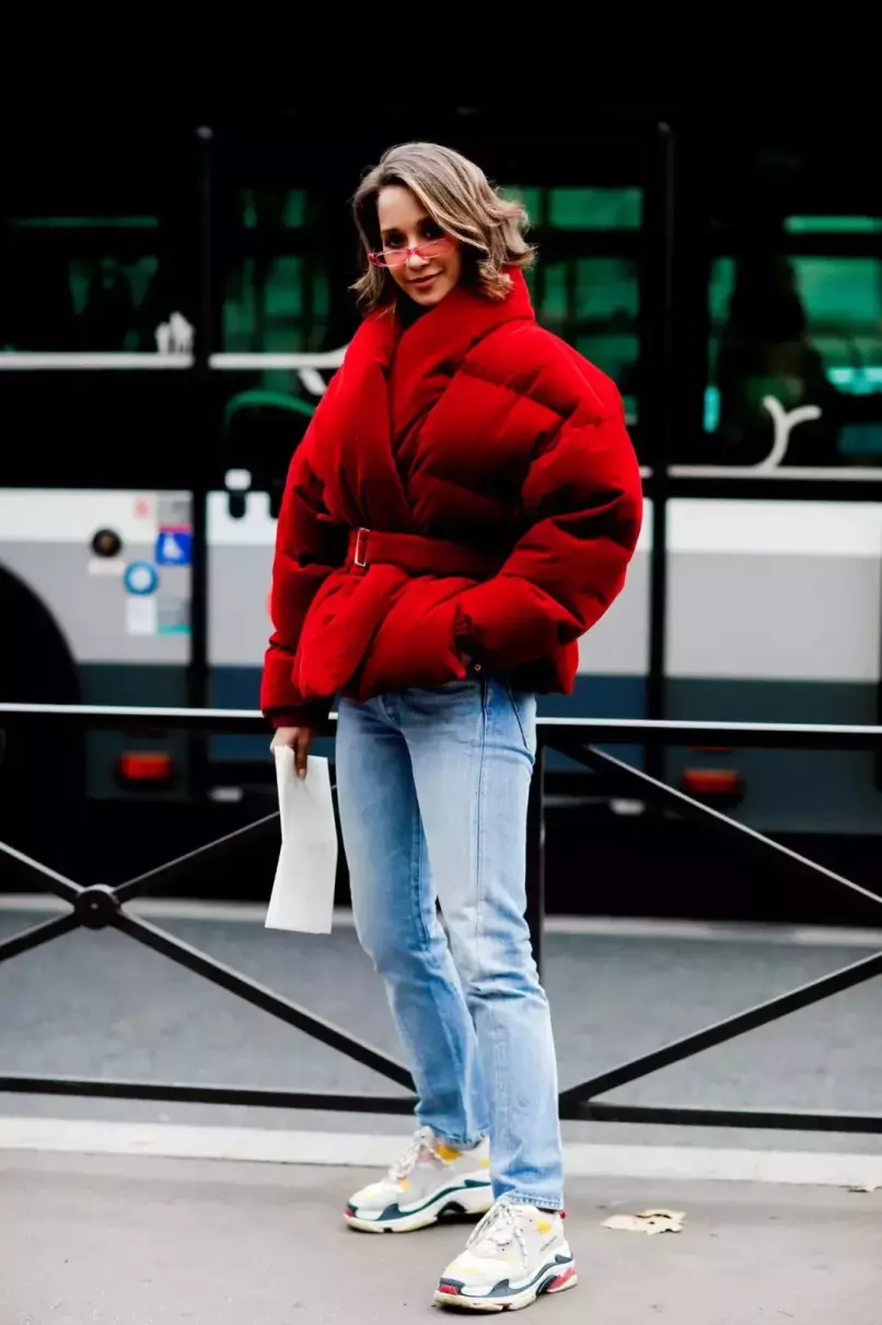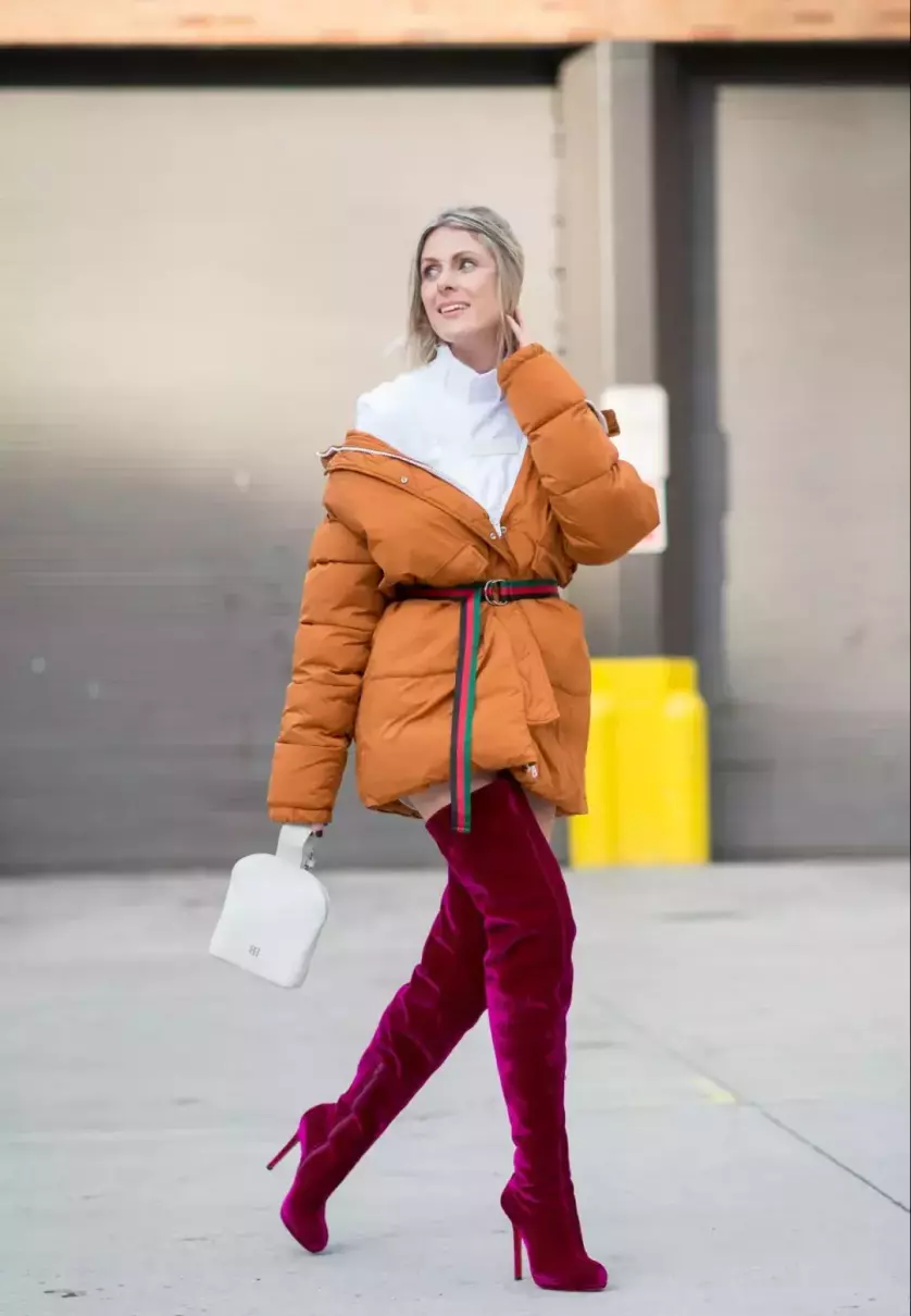 过臀的羽绒服很容易让人看起来臃肿,特别是当有了羽绒服的温暖后,我们在搭配上也不能自暴自弃,否则会看起来有些许邋遢。