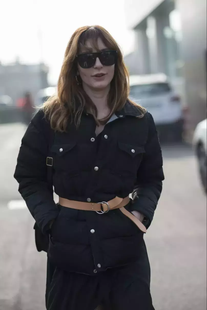 对于和羽绒服搭配的腰带来说,我们在选择上也有讲究,宽度在3cm左右为最佳,不然会驾驭不了这一质感厚重的单品。