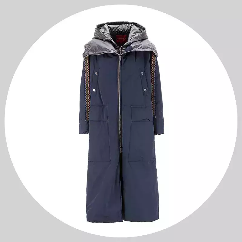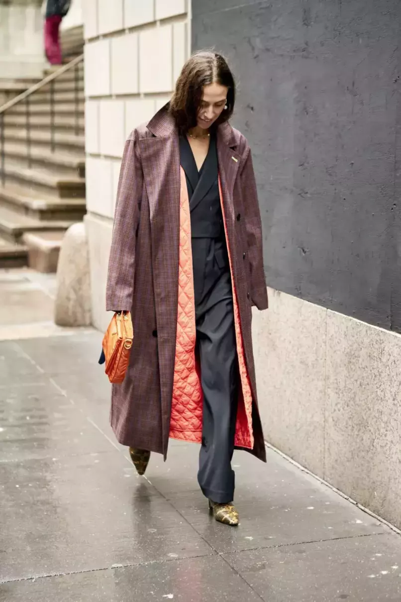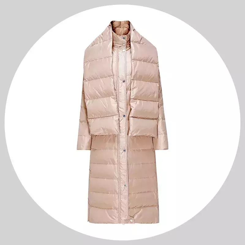 其实在秋冬季,长款轻薄的绗缝羽绒服内搭在大衣里面,呈现出穿着者拥有的干练姿态,也是非常适合职场穿着的单品,小个子女生穿上一双尖头高跟鞋即可。