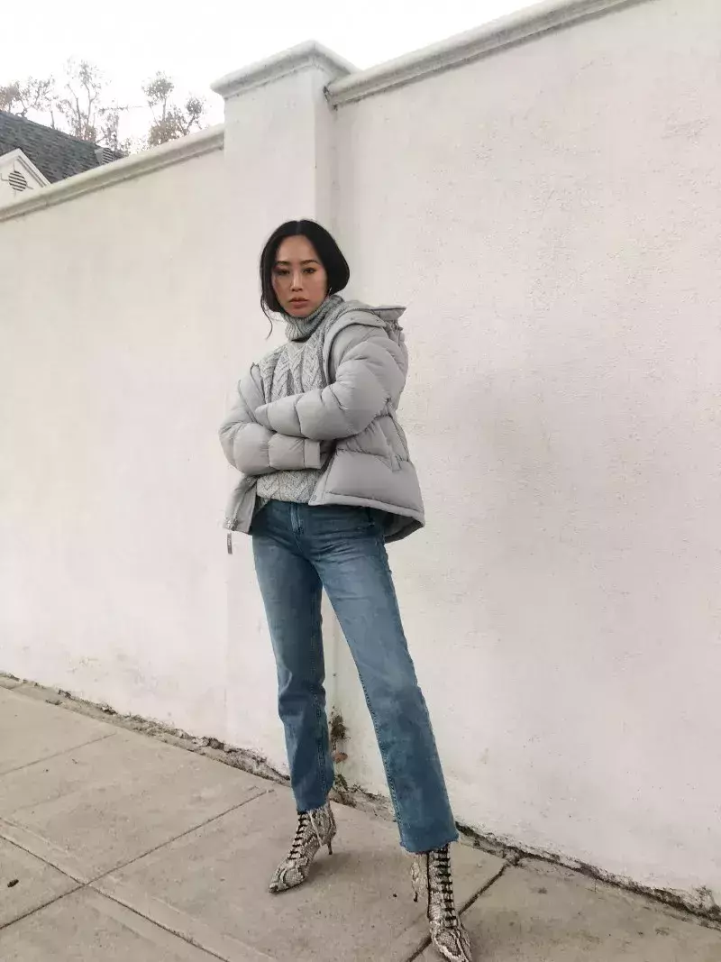 很多时候,我们想到羽绒服首先就想到的是厚和臃肿,但其实在这一品类中,轻薄的绗缝款也属于其中,也是往往会被我们忽略掉的秋冬显瘦必备。看看身高只有162cm,脚踩平底鞋的Oliver Palermo就知道了,你还会怕显矮吗?