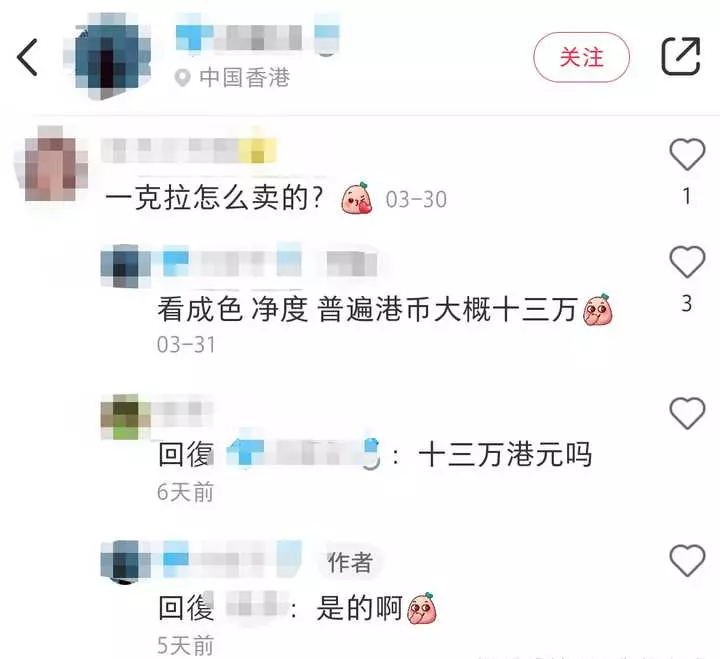 从评论中可以看出,按照大家的主流购买方向,购买人数最多的、最普遍的1克拉六爪钻戒购买价格是13万港元,按照汇率“1港元=0.83人民币”,折算成人民币是107900元。