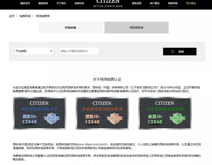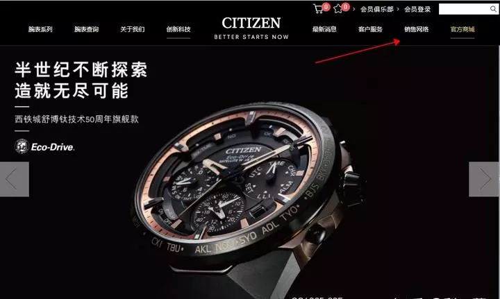 首先我们需要打开西铁城的中国官方网站,打开销售网络。