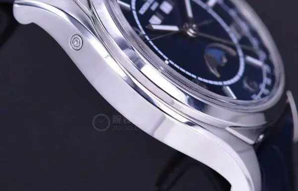江诗丹顿又在伍陆之型系列全历月相腕表多添了一个蓝盘表款,整体的表款设计和去年的表款一脉相承,包括马耳他十字造型表耳、分区表盘、嵌入式表冠等等,但是同时也做出了一些调整,比如指示日期的蓝色指针改成了银色指针,月相显示盘外缘也做出了一些变化。江诗丹顿伍陆之型系列将现代优雅以及休闲精致演绎得十分出色,适合不同场合佩戴。