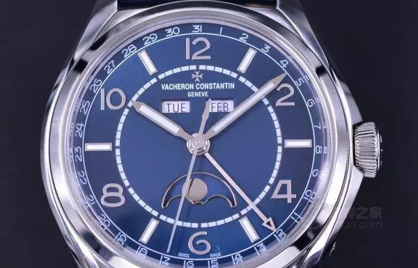 自 2016?年以来,江诗丹顿在其采用现代设计的运动腕表系列中首次推出原创日期显示,型号为 Overseas Moon Phase Retrograde Date。顾名思义,指针指向半圆形刻度,位于仅由时标组成的小时轮圈下方,日期变得容易阅读。