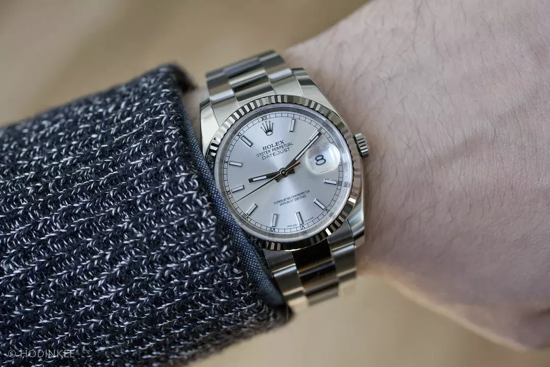 日志型也是在金属、尺寸、手链、表盘和表圈选项方面最多样化的系列。在尺寸选择方面,Datejust有26毫米、28毫米、31毫米、36毫米和41毫米的外壳,而金属选项包括钢、黄金、钢和黄金。