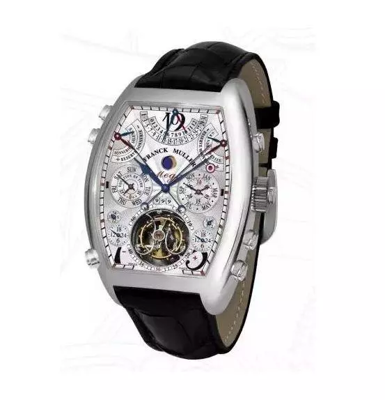 以及这枚法穆兰AETERNITAS/MEGA系列8888 GSW T CCR QPS白色表壳腕表,这枚腕表搭载自动机械机芯,酒桶型表壳为18K白金材质,具有日期显示、星期显示、月份显示、万年历、月相、双时区、计时、飞返/逆跳、和陀飞轮等复杂功能,防水30米,参考价格14000000元(以实际价格为准)。
