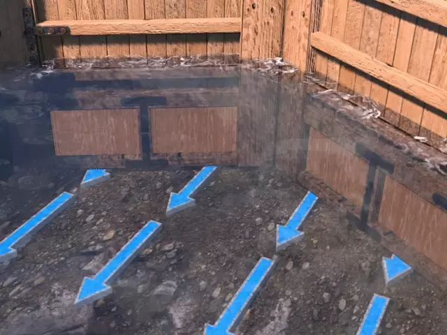 方法也很简单:在门的下方开几个小洞,让水从一侧流出,两边水位持平后门自然就能轻松打开了。