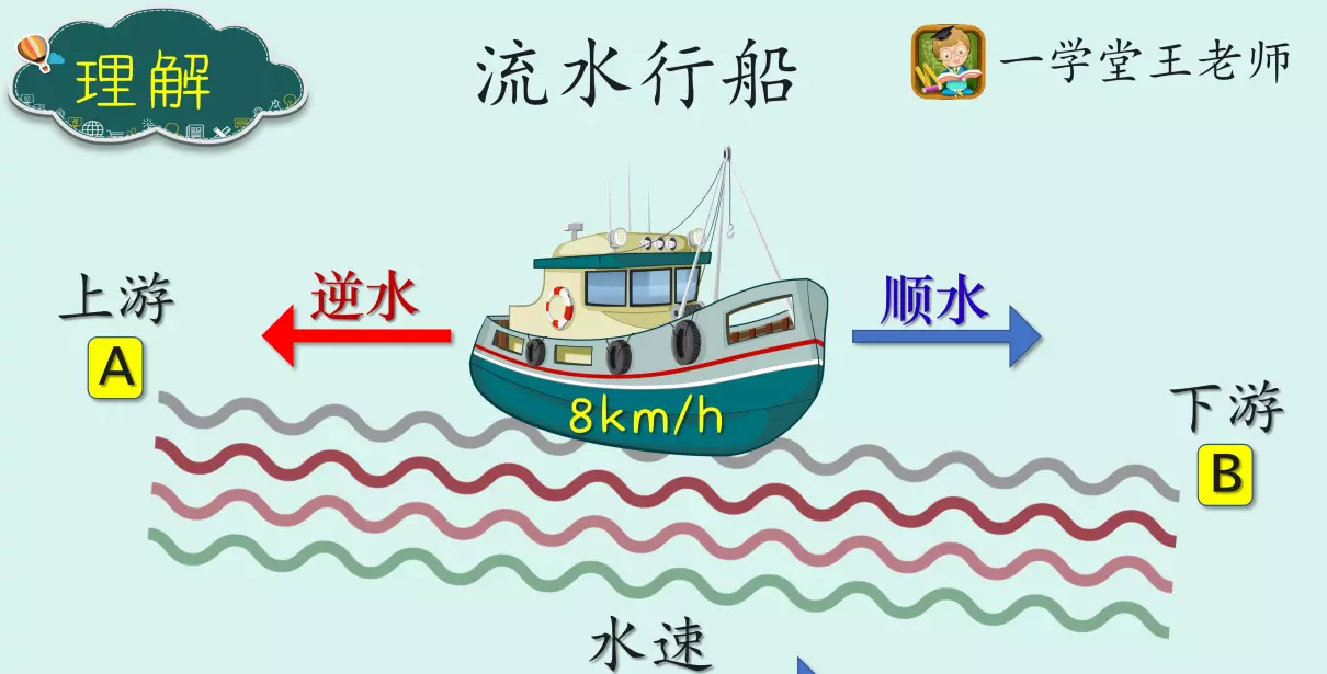 流水行船问题是行程大类中的分支。船在江河中航行,除了本身静水船速外还受到水流的推送或顶逆影响。首先要理解流水行船中的几个量。学好行程问题,对初中物理也是有好处滴!